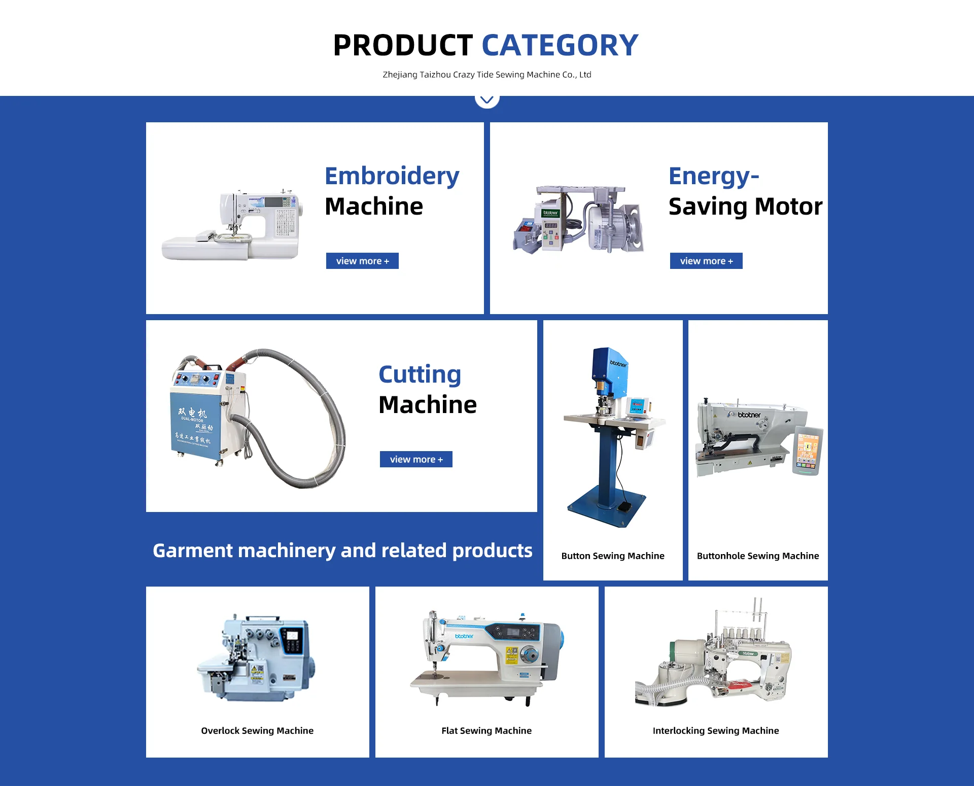 Productos principales:Máquina de coser, máquina de coser industrial, máquina de coser doméstica, motor de ahorro de energía, máquina de bordar